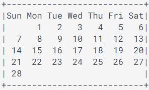 输一个正整数n(1≤n≤12),表示需要输出的日历月数。