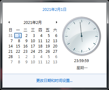 例如2021年2月的日历: